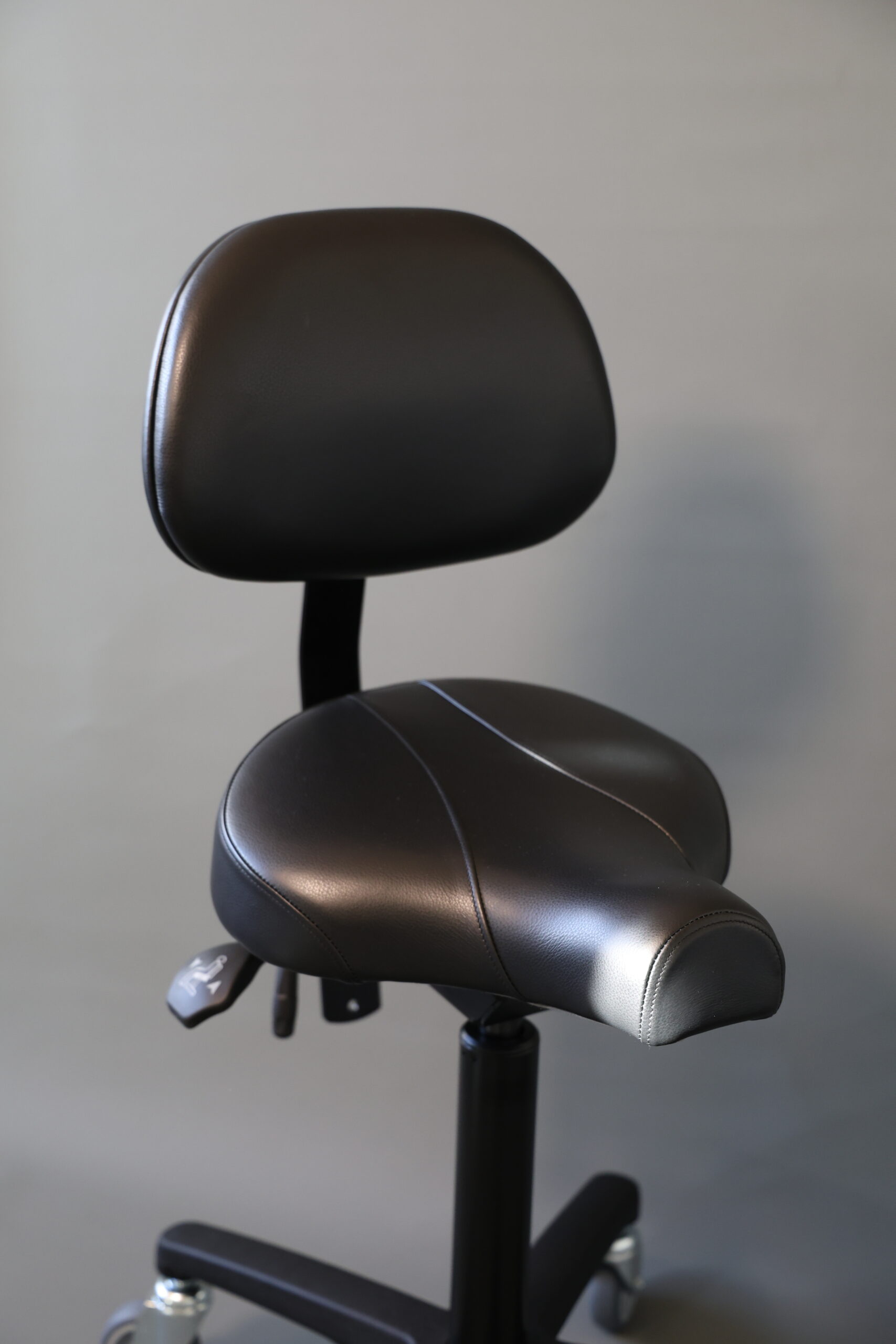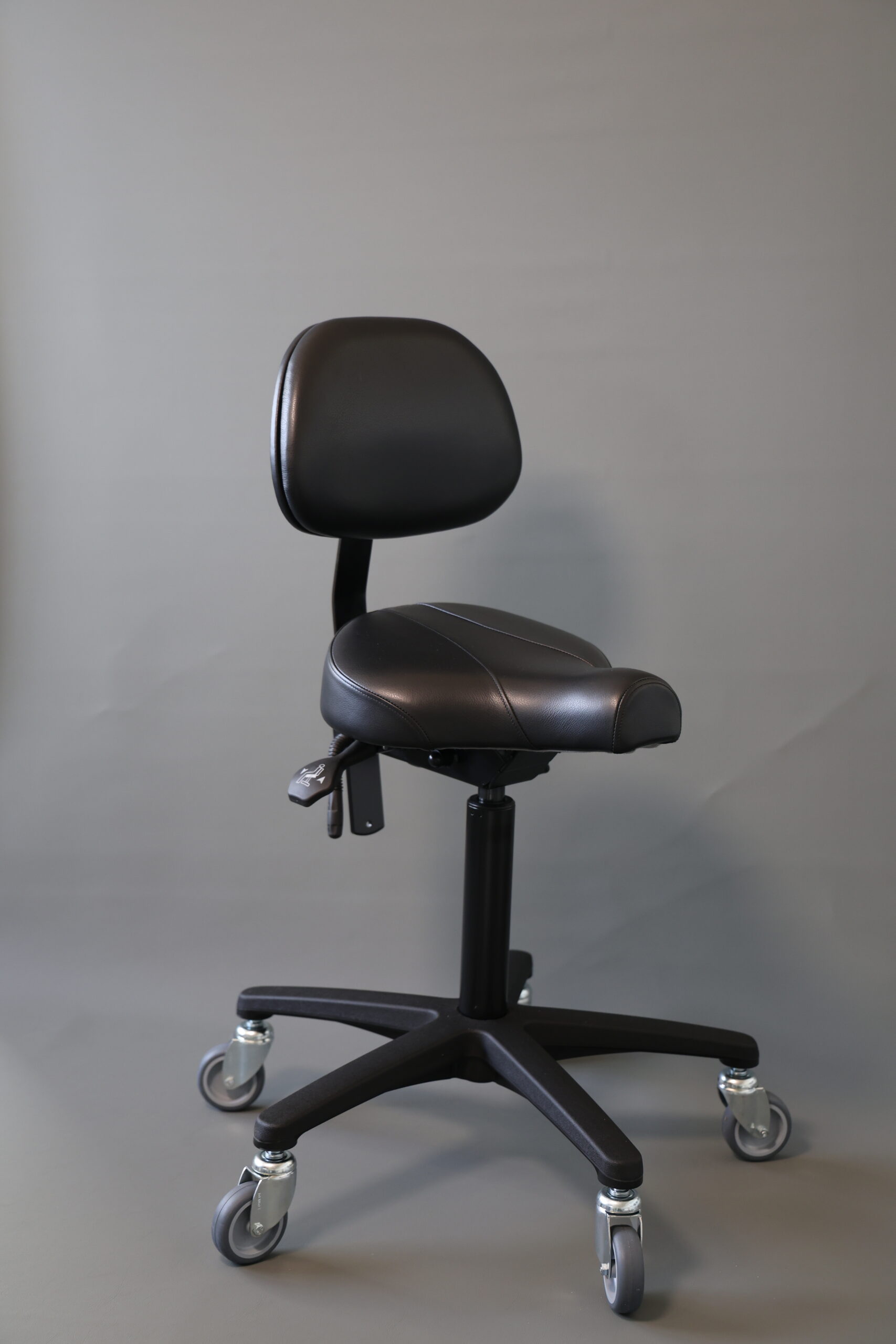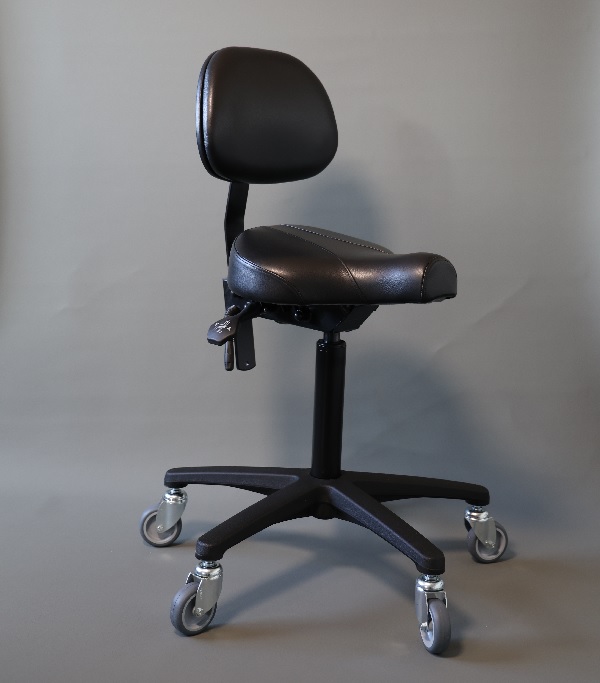 Egholm Biker 200-380 med ryglæn, er en ståstøttestol, hvor der virkelig er god plads til at benene kan komme nedad.