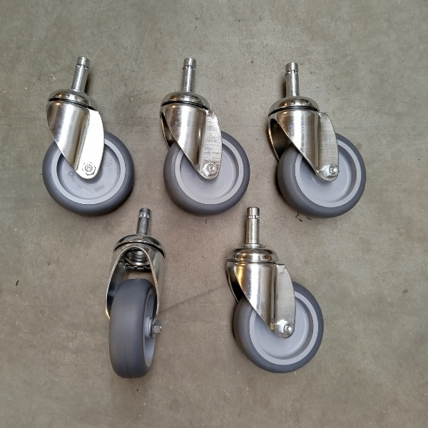 Skal stolen glide lysløst afsted, så vælg Gummihjul. Er du frisør eller andet hvor hjulene kører rundt i hår eller lign. så vælg Efalock Clic Tec hjul, som nemt kan skilles ad og rengøres ved behov. Samtidig glider de lydløst hen over gulvet.